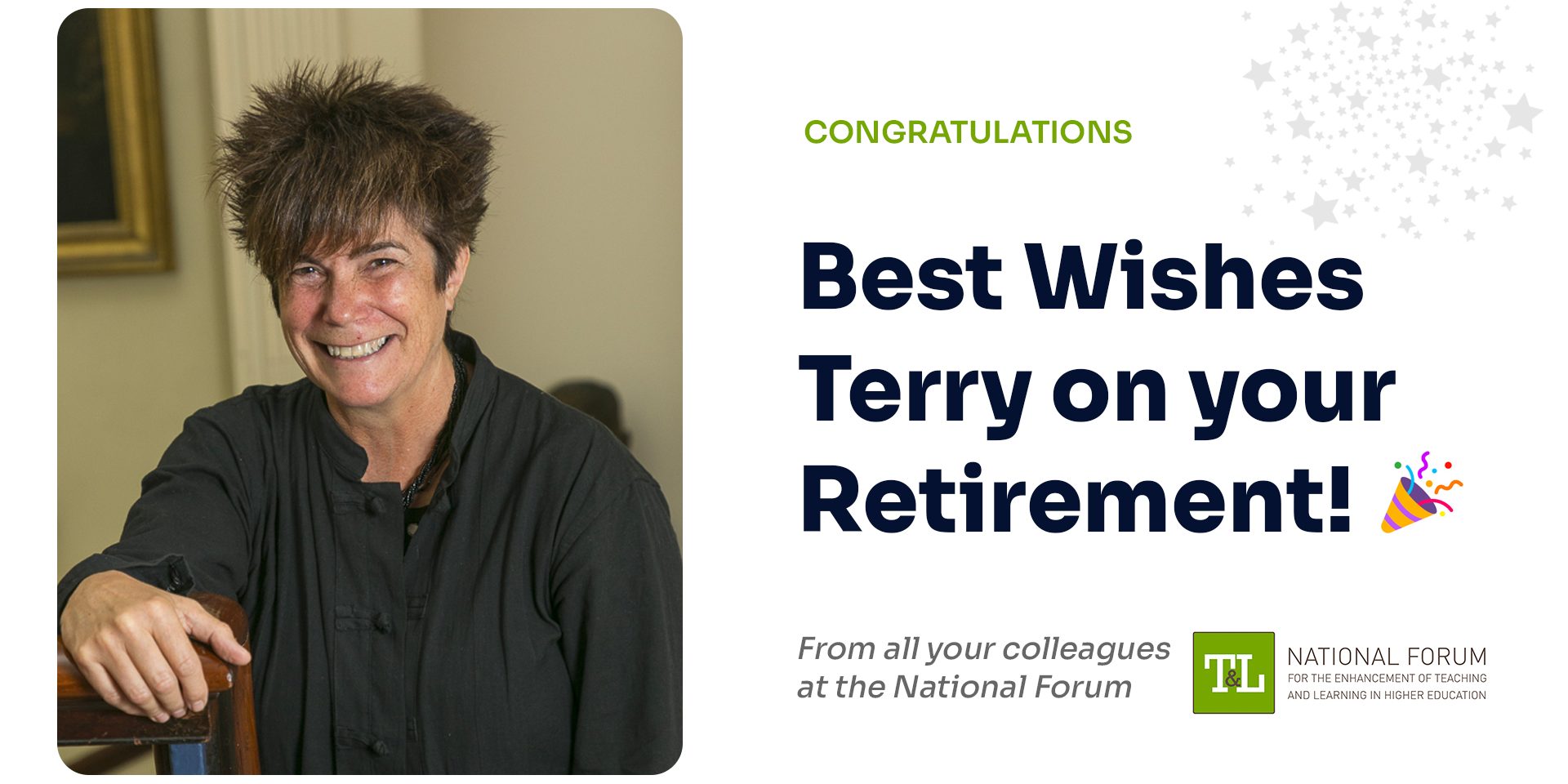On her retirement, as plans are in train to establish the National Forum on a sustainable basis from 2022, we thank Terry for everything from the bottom of our hearts. We know that she will be involved in other projects over the coming years and hope our paths will cross again.