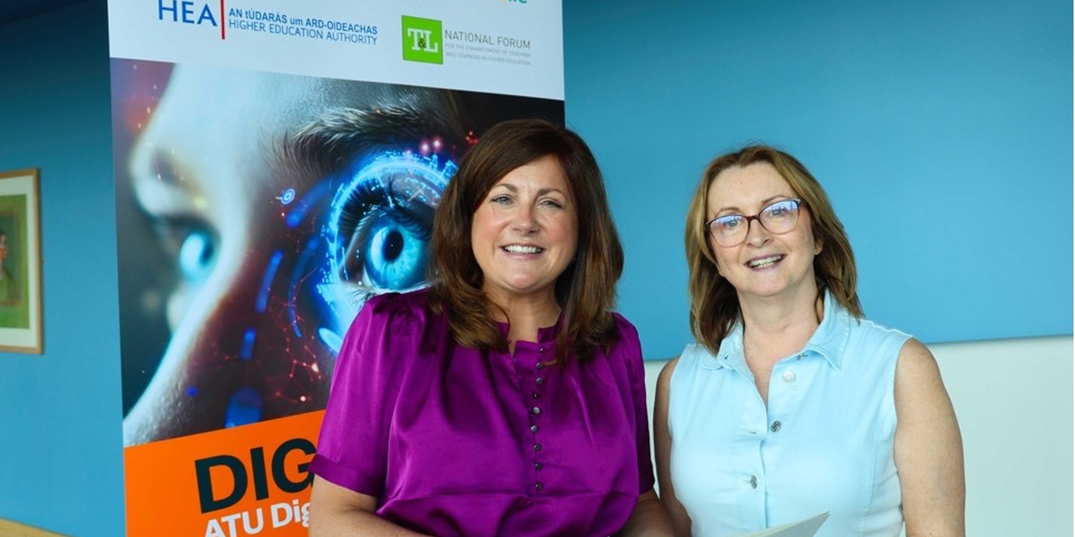 Dr Carina Ginty and DigitalEd Conference Chair “Annually DigitalEd at ATU provides a platform to delve into the digital transformation theme, the AI challenges, and opportunities, plus the digital innovation and student success activities happening across the sector. Contributions from the day helps us pave the way for transformative change in learning and teaching.”