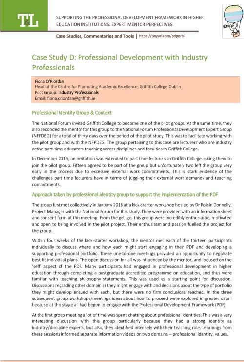 Case Study D: Professional Development with Industry Professionals