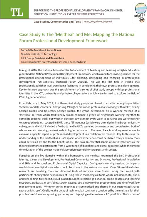 Case Study E: The ‘Meitheal’ and Me: Mapping the National Forum Professional Development Framework