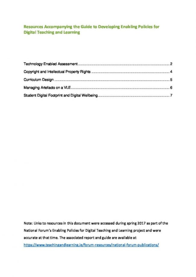 Resources Accompanying the Guide to Developing Enabling Policies for Digital Teaching and Learning