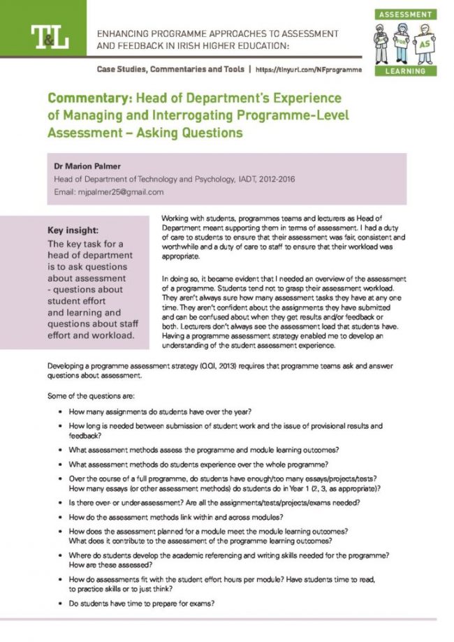 Head of Department’s Experience of Managing and Interrogating Programme-Level Assessment – Asking Questions