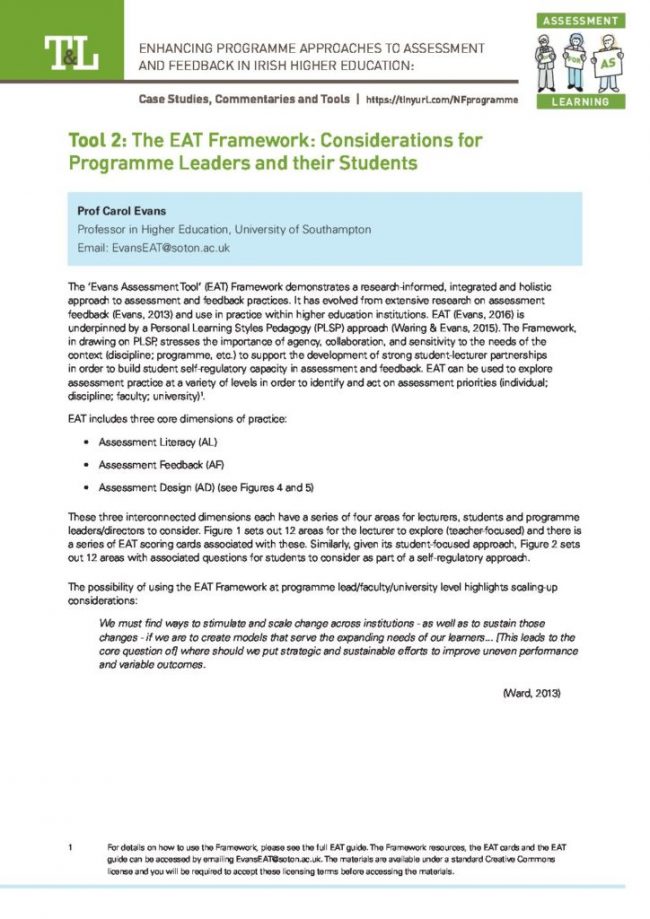 The EAT Framework: Considerations for Programme Leaders and their Students