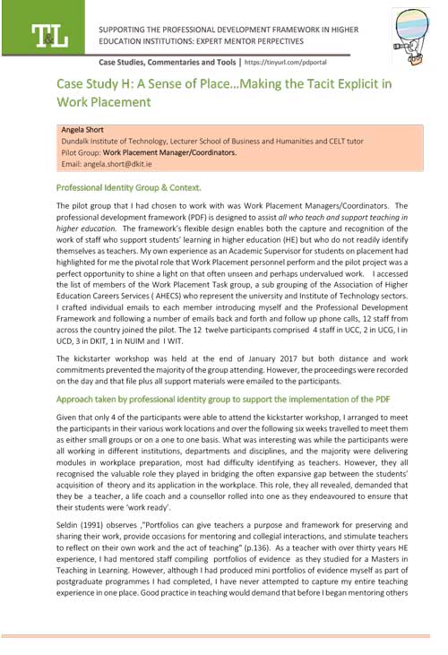 Case Study H: A Sense of Place…Making the Tacit Explicit in Work Placement