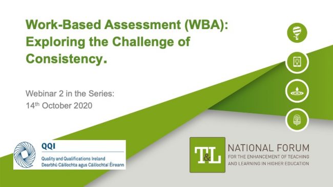 “Exploring the Challenge of Consistency ” is the second Work-based Assessment (WBA) webinar brought to you by the National Forum and partner, QQI. During the first webinar some main key challenges were identified by the participants, i.e. consistency/reliability, feedback, authenticity. The most common theme identified was consistency and reliability in the work experience context.