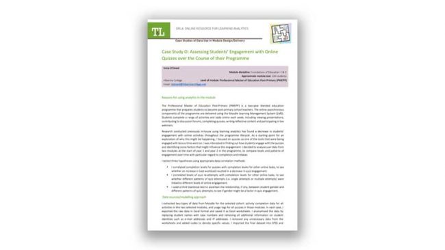 Case Study O: Assessing Students’ Engagement with Online Quizzes over the Course of their Programme